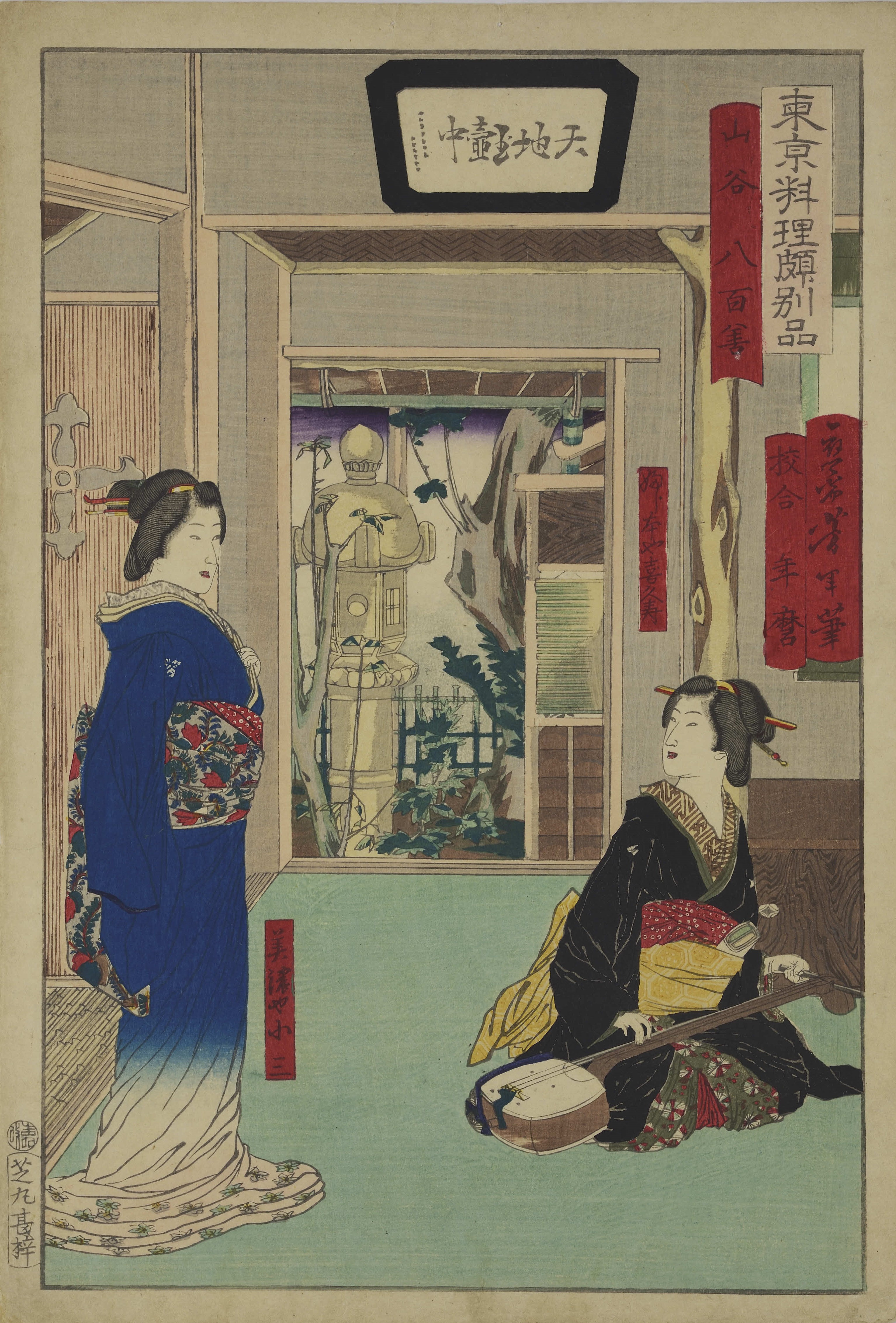 Aus der Serie: Restaurants in Tokyo mit besonderen Spezialitäten. Farbholzschnitt, 1871. Verleger: Maruya Shinpachi, Shiba. Staatliche Museen zu Berlin, Museum für Asiatische Kunst, Schenkung Dr. Marianne Rumpf, ehemals Sammlung Fritz Rumpf, Inv. Nr. 1999-82, Foto: Art Research Center, Ritsumeikan University, Kyoto.